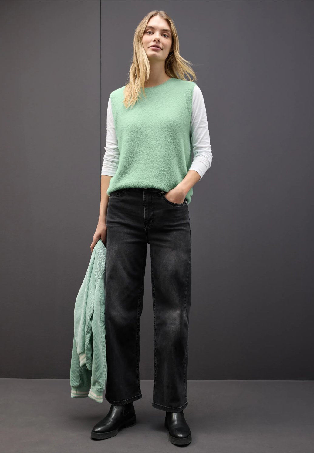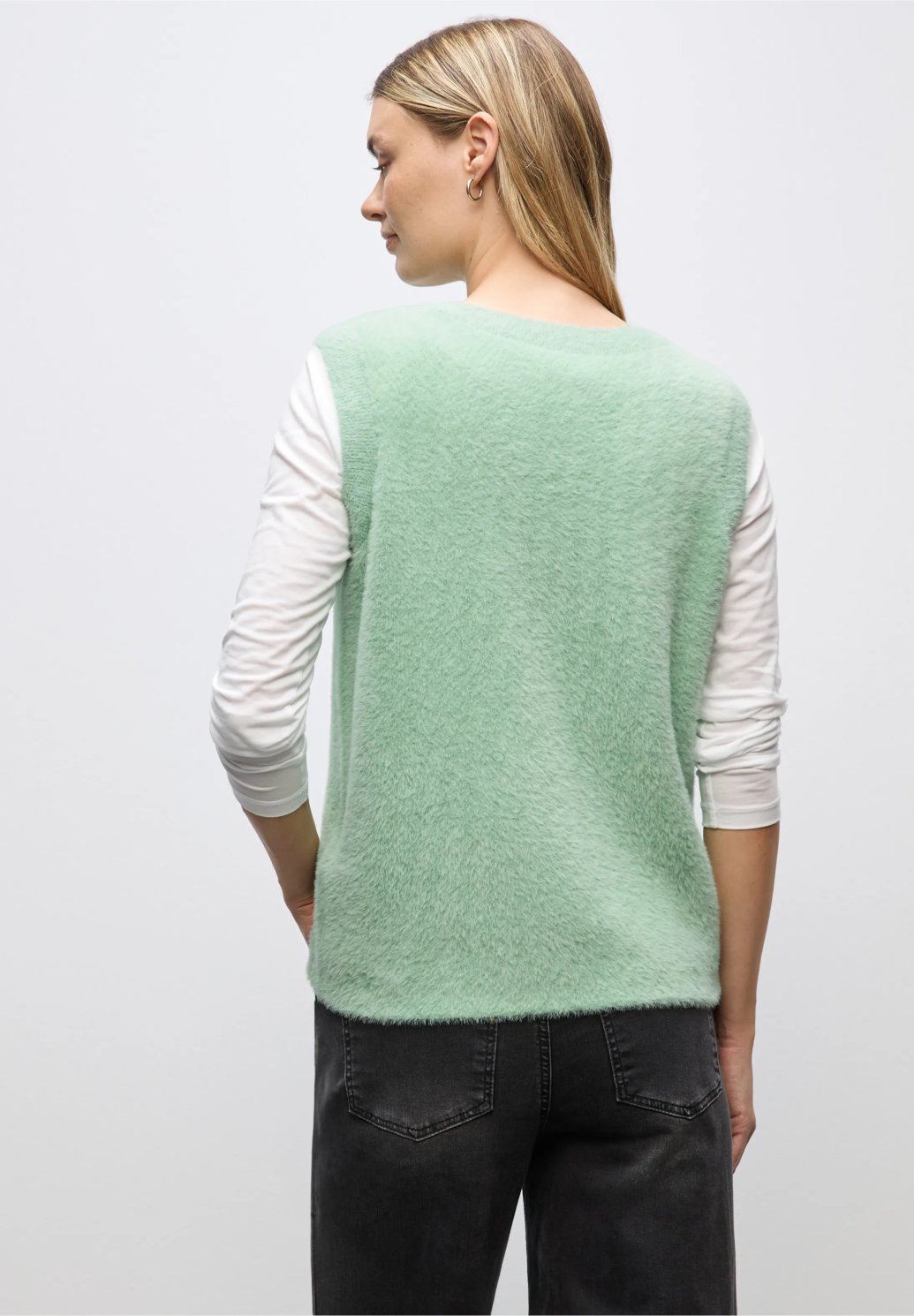 Tento svetr bez rukávů od Street One pro ženy je perfektním doplňkem vašeho vrstveného outfitu. Měkká péřová příze zajišťuje výjimečně útulný pocit, zatímco kulatý výstřih a jednobarevný design ho činí dostatečně všestranným a lze jej kombinovat s dalšími kousky oblečení. Ideální přes halenky nebo košile s dlouhým rukávem.