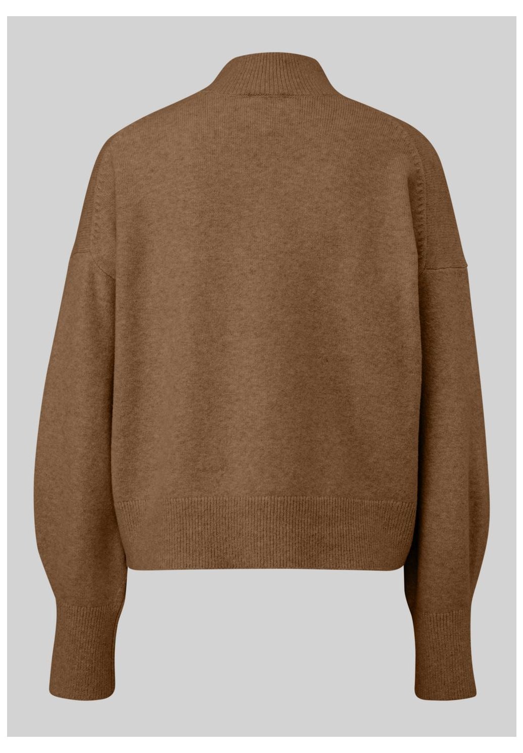 Stylový dámský pletený svetr se stojáčkem a dlouhými rukávy je ideální volbou pro chladné dny. Díky směsi bavlny a vlny je příjemně měkký, hřejivý, pružný a krásně se přizpůsobí postavě. Volnější střih a jemný pletený vzor dodávají ženský a nadčasový vzhled, který se hodí na každodenní nošení, do práce i na volný čas. Žebrované lemy na rukávech i spodním okraji podtrhují pohodlný a stylový design.
