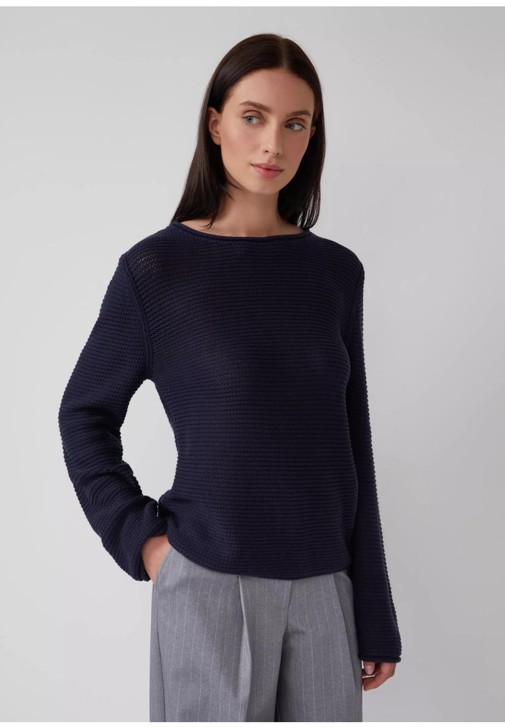 Tento příjemný pletený svetr s ohrnutými okraji vás potěší měkkým, hřejivým materiálem a klasickým kulatým výstřihem. Střih slim fit se dokonale hodí k vašemu ležérnímu vzhledu a zajistí příjemné chvíle v chladných dnech.