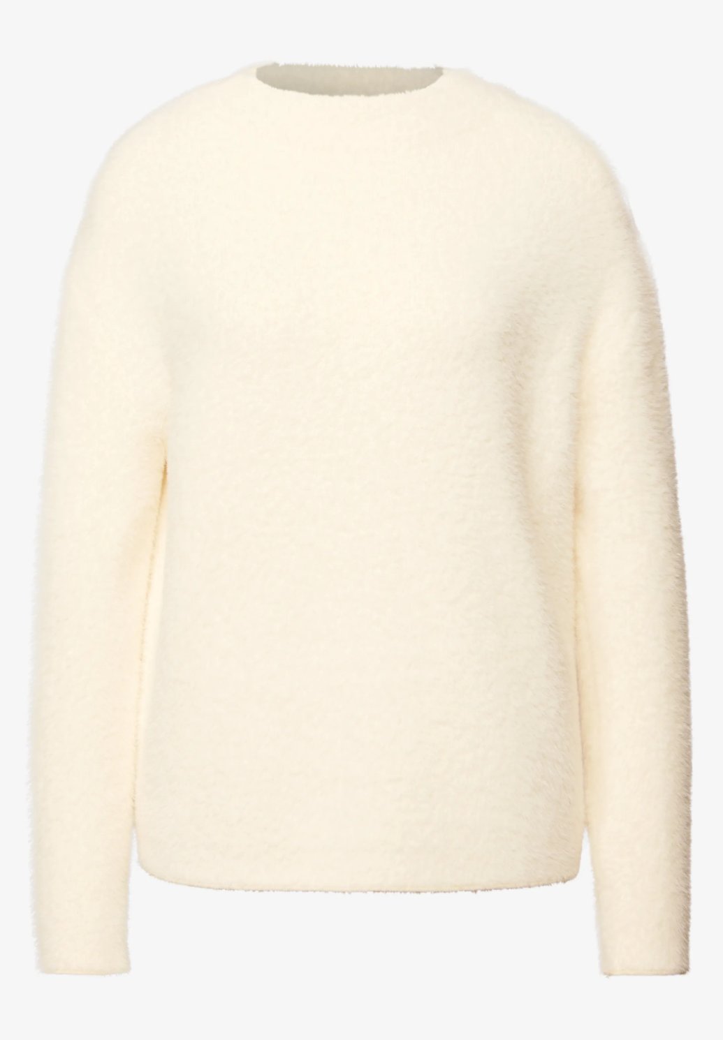Tento dámský svetr od Street One zaujme svou měkkou péřovou přízí a pohodlným pocitem. Stojáček a dlouhé rukávy poskytují teplo a moderní vzhled. Ideální pro útulné dny se stylovým nádechem.