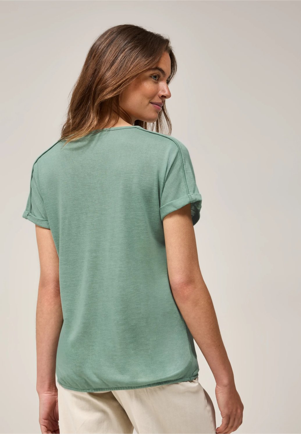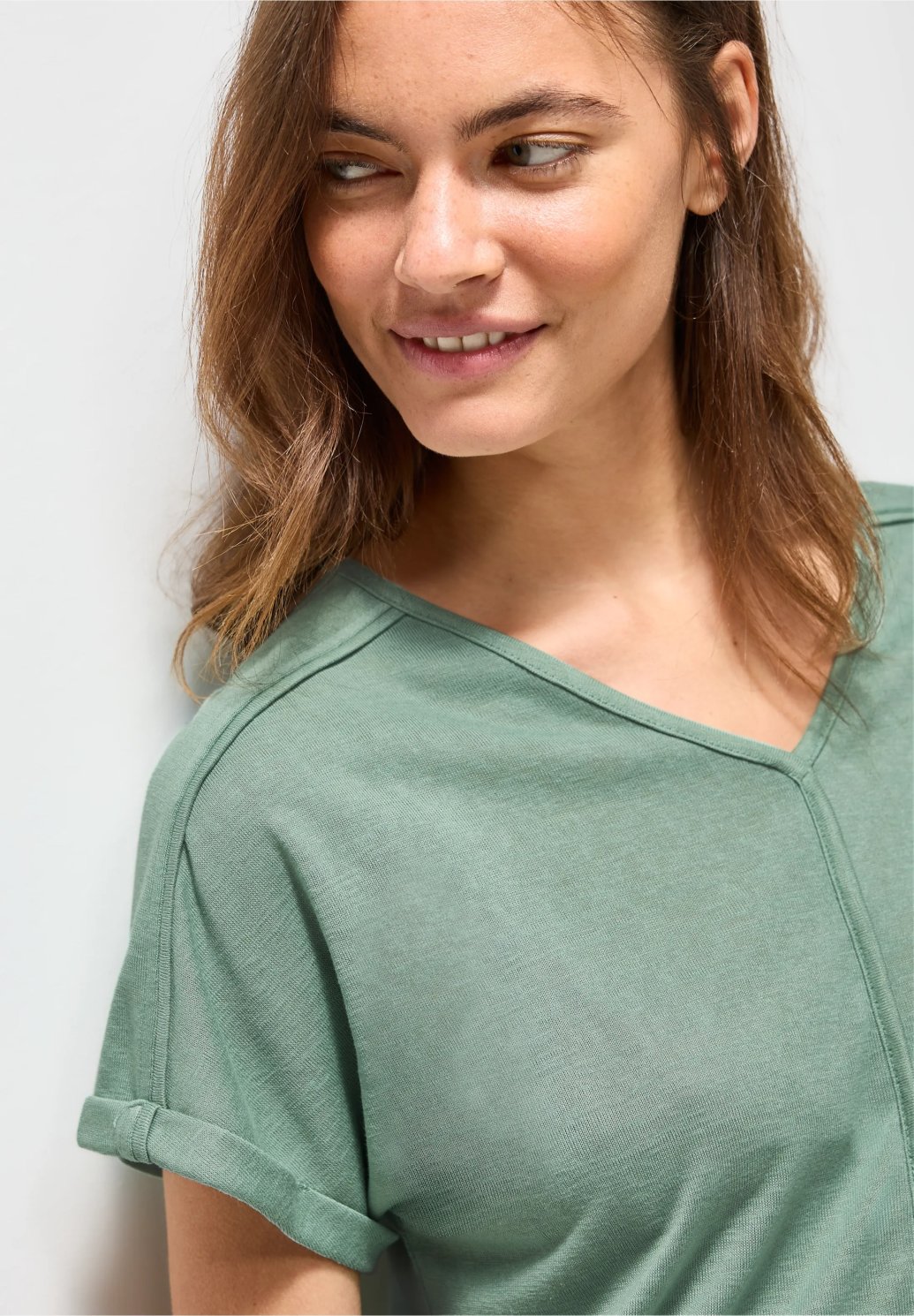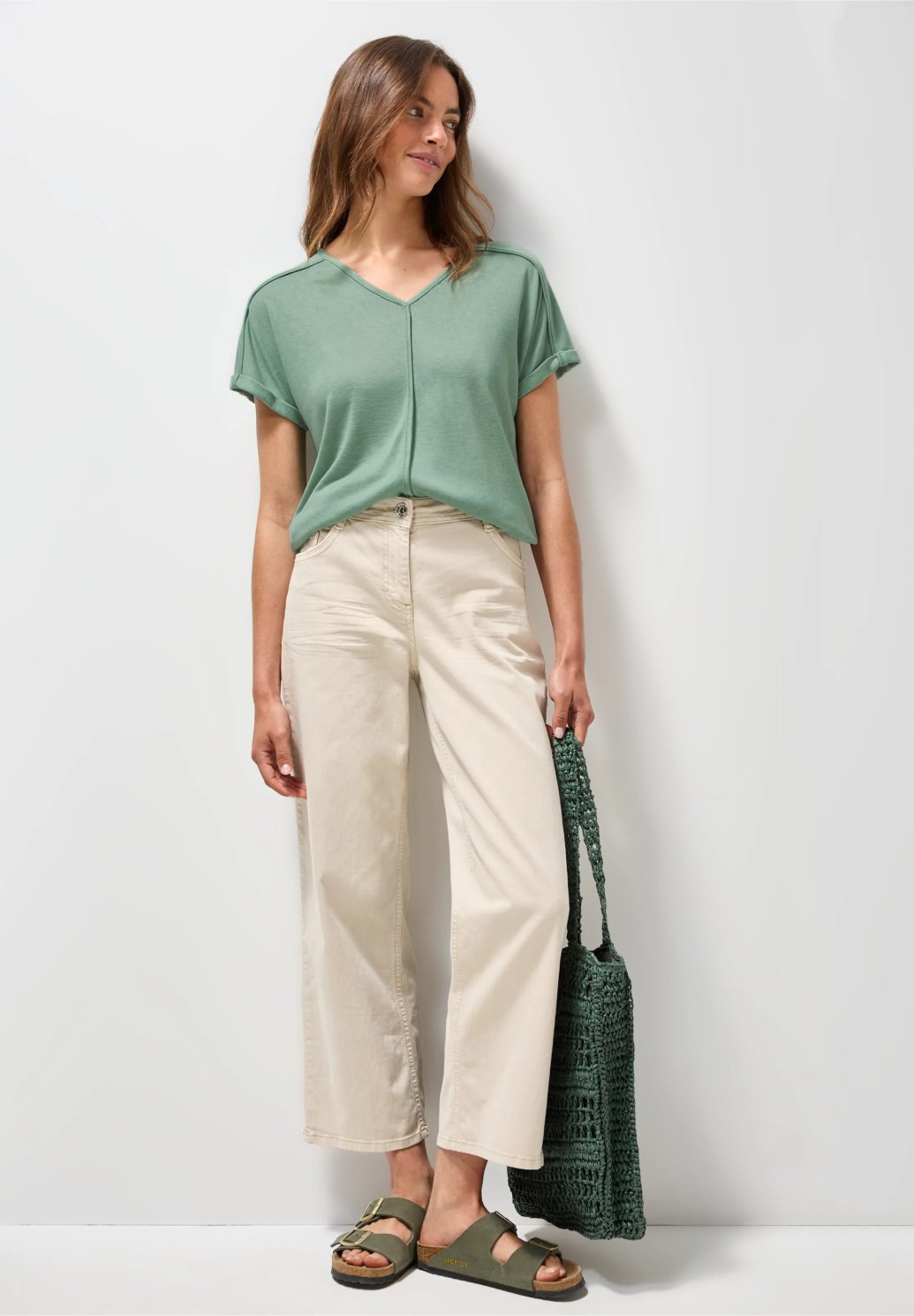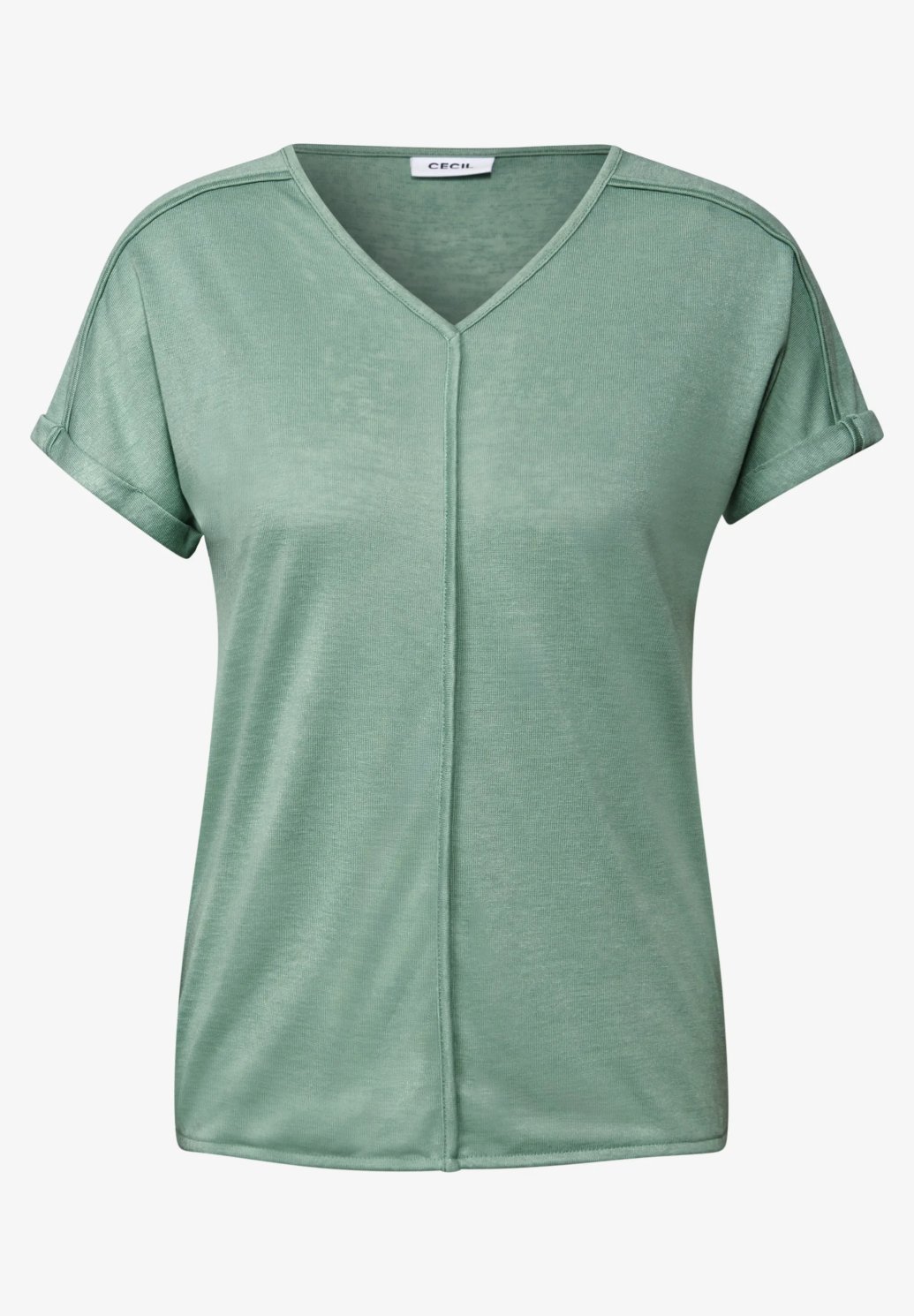 Toto tričko od značky CECIL pro ženy se vyznačuje ženským výstřihem do V a ozdobnými švy. Měkký žerzejový materiál a elastický lem zajišťují pohodlné nošení a příjemný pocit na každý den. Tričko je jednoduchý univerzální kousek pro mnoho příležitostí.
