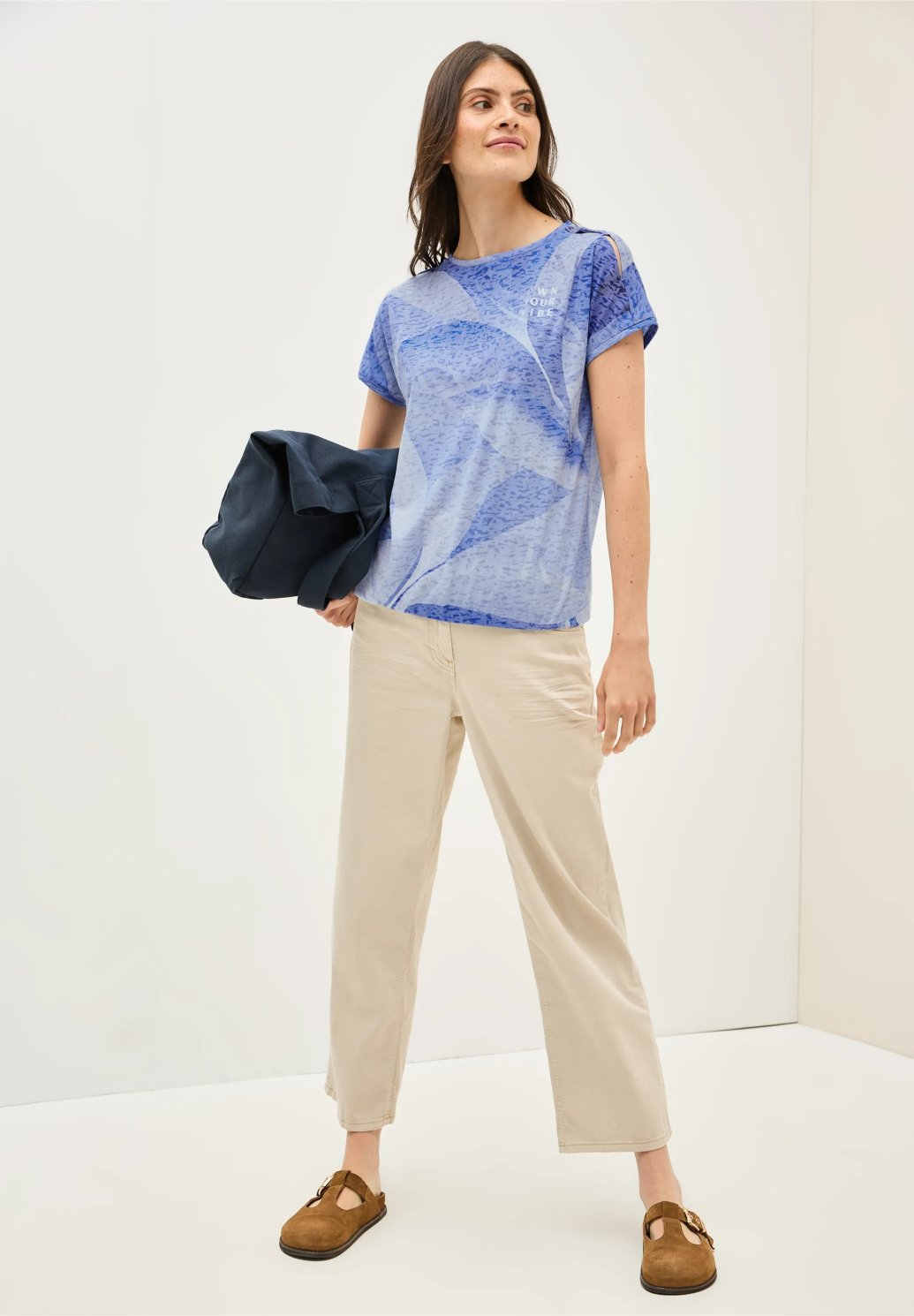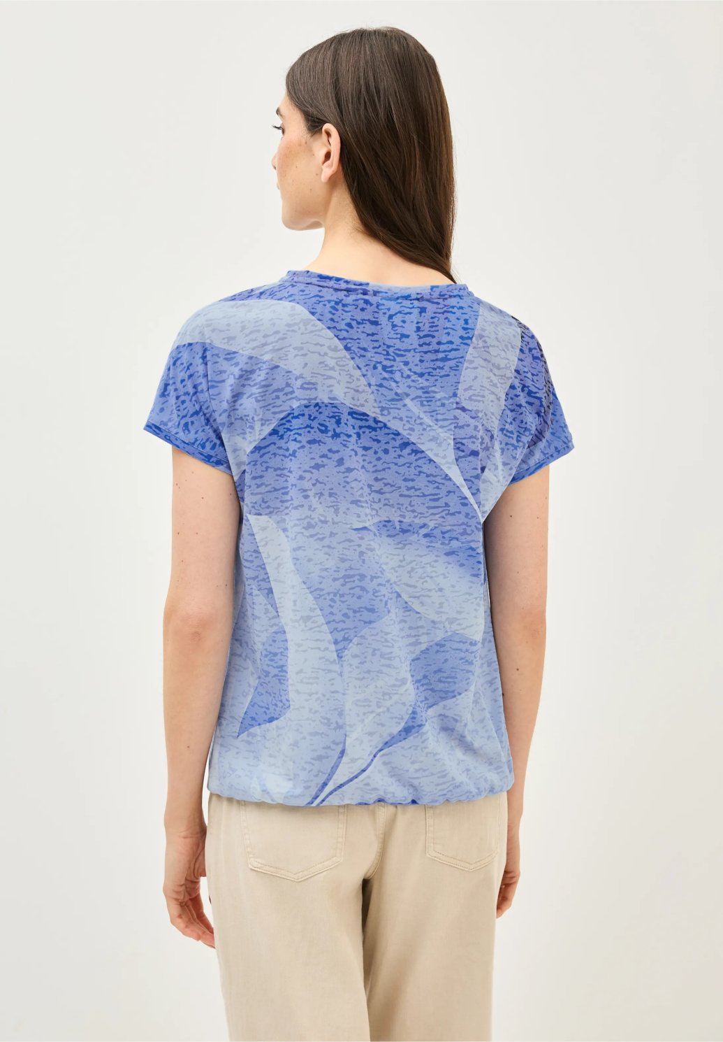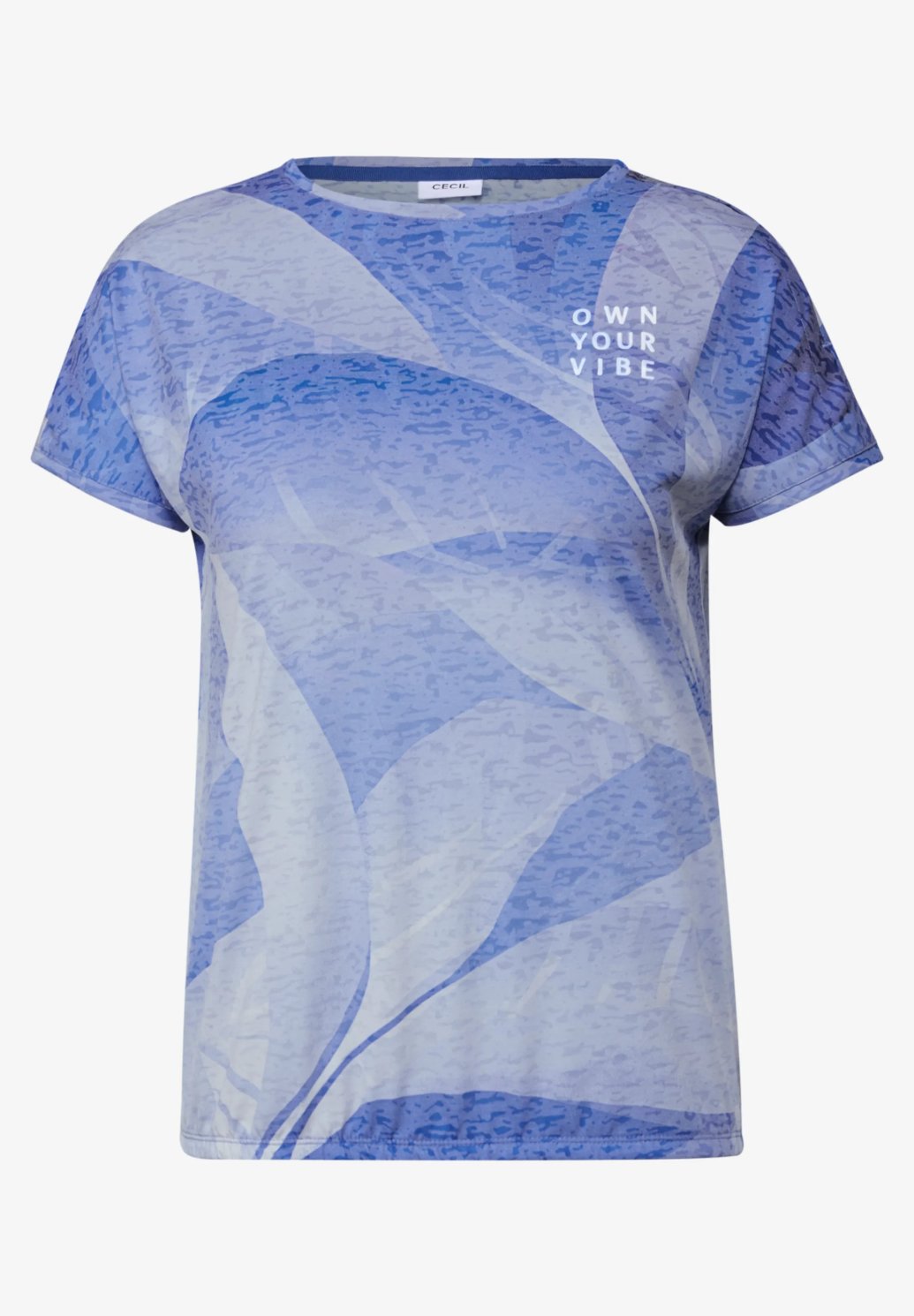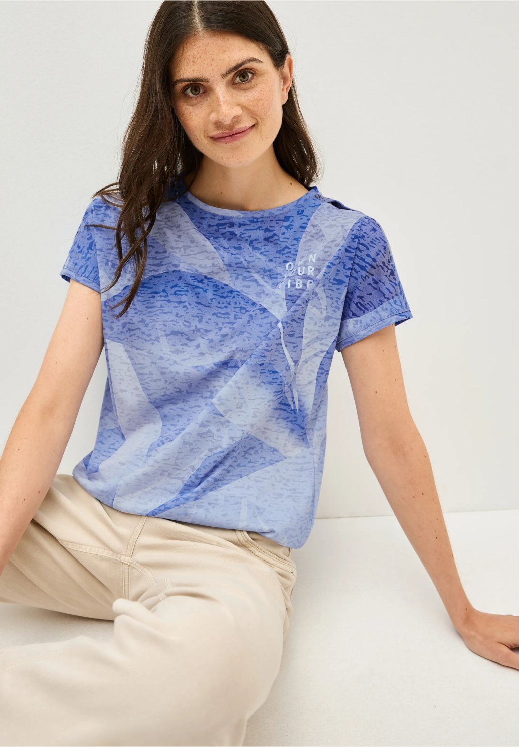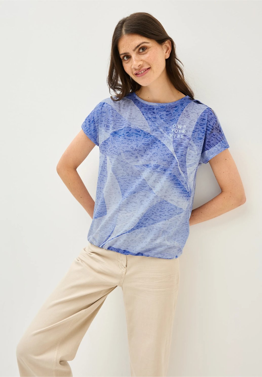 Toto dámské tričko od značky CECIL se vyznačuje moderním efektem vyhoření. Elastický lem zajišťuje uvolněný střih a grafický vzor dotváří design. Ideální pro lehké letní outfity.