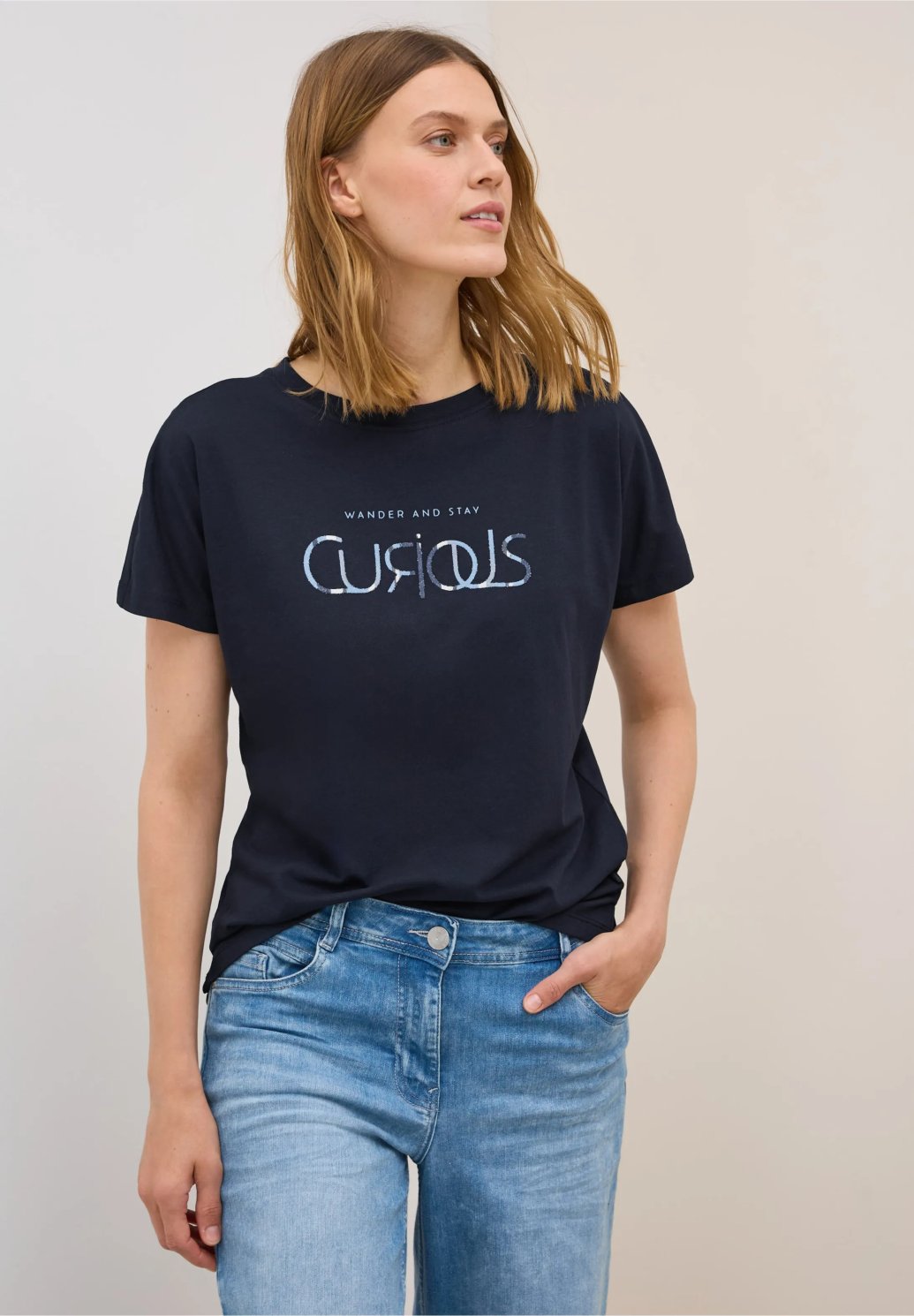 Toto dámské tričko košile od CECIL kombinuje moderní nápisy s ženským lodičkovým výstřihem. Krátké rukávy a měkká směs bavlny a modalu nabízejí vysokou úroveň pohodlí. Ideální pro stylový každodenní outfit.