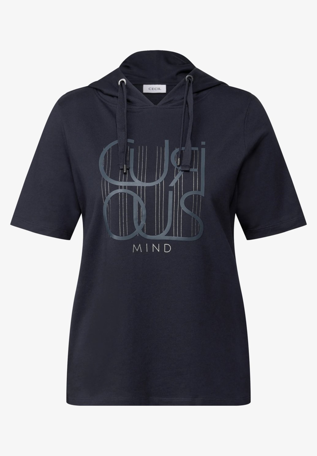 Tato dámská mikina s kapucí od CECIL s grafickým potiskem a sportovním designem je perfektním kouskem pro vaše letní outfity. Kapuce se stahovací šňůrkou a krátké rukávy podtrhují ležérní styl. Měkká směs bavlny a modalu je příjemně hebká na dotek – ideální pro uvolněné outfity.