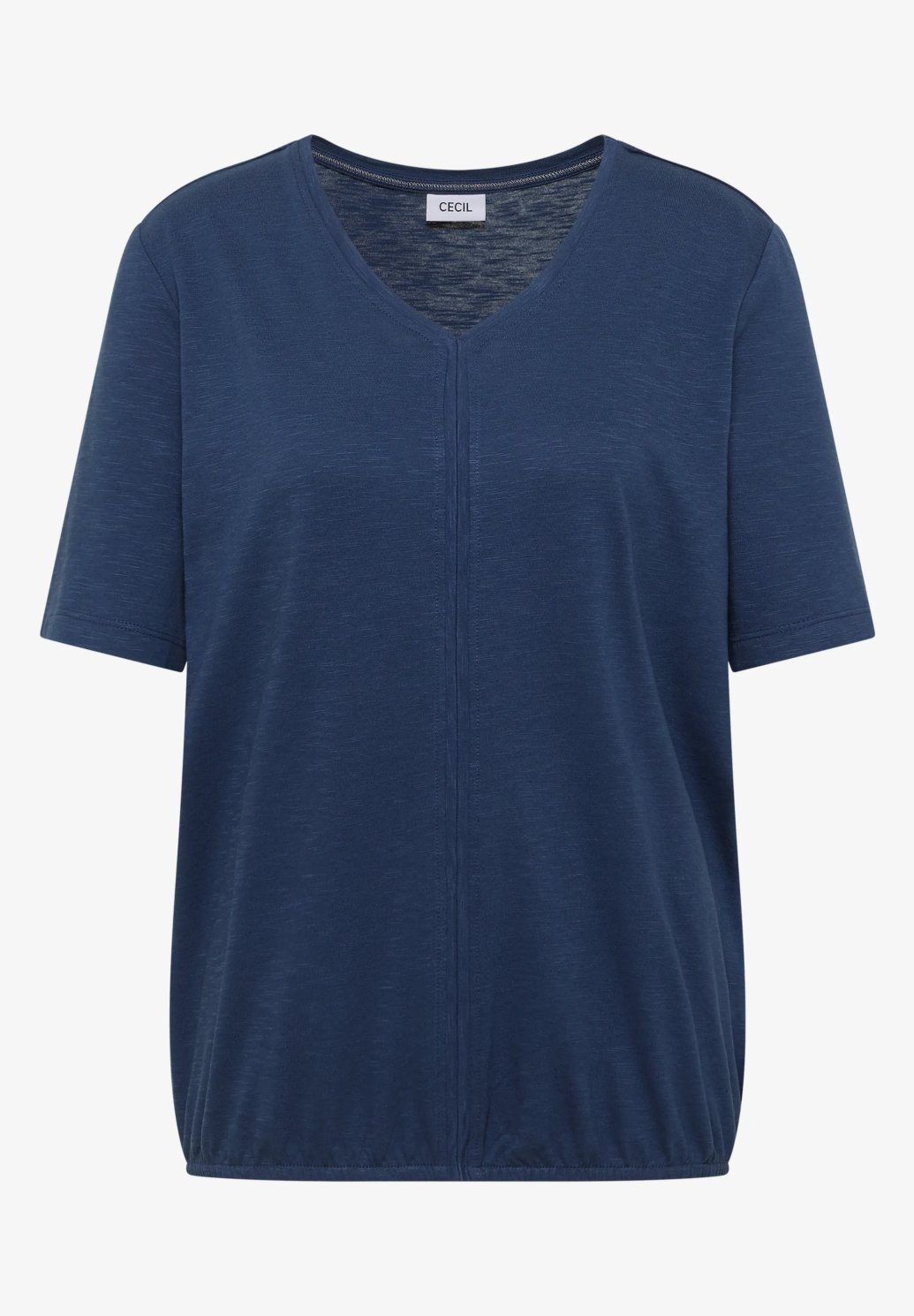 Toto tričko od značky CECIL pro ženy zaujme jemnými detaily a měkkým pocitem. Výstřih do V a ozdobné prošívání dodávají tomuto ležérnímu tričku ženský nádech. Elastický lem zajišťuje uvolněný střih. Směs bavlny a modalu je mimořádně pohodlná na nošení.