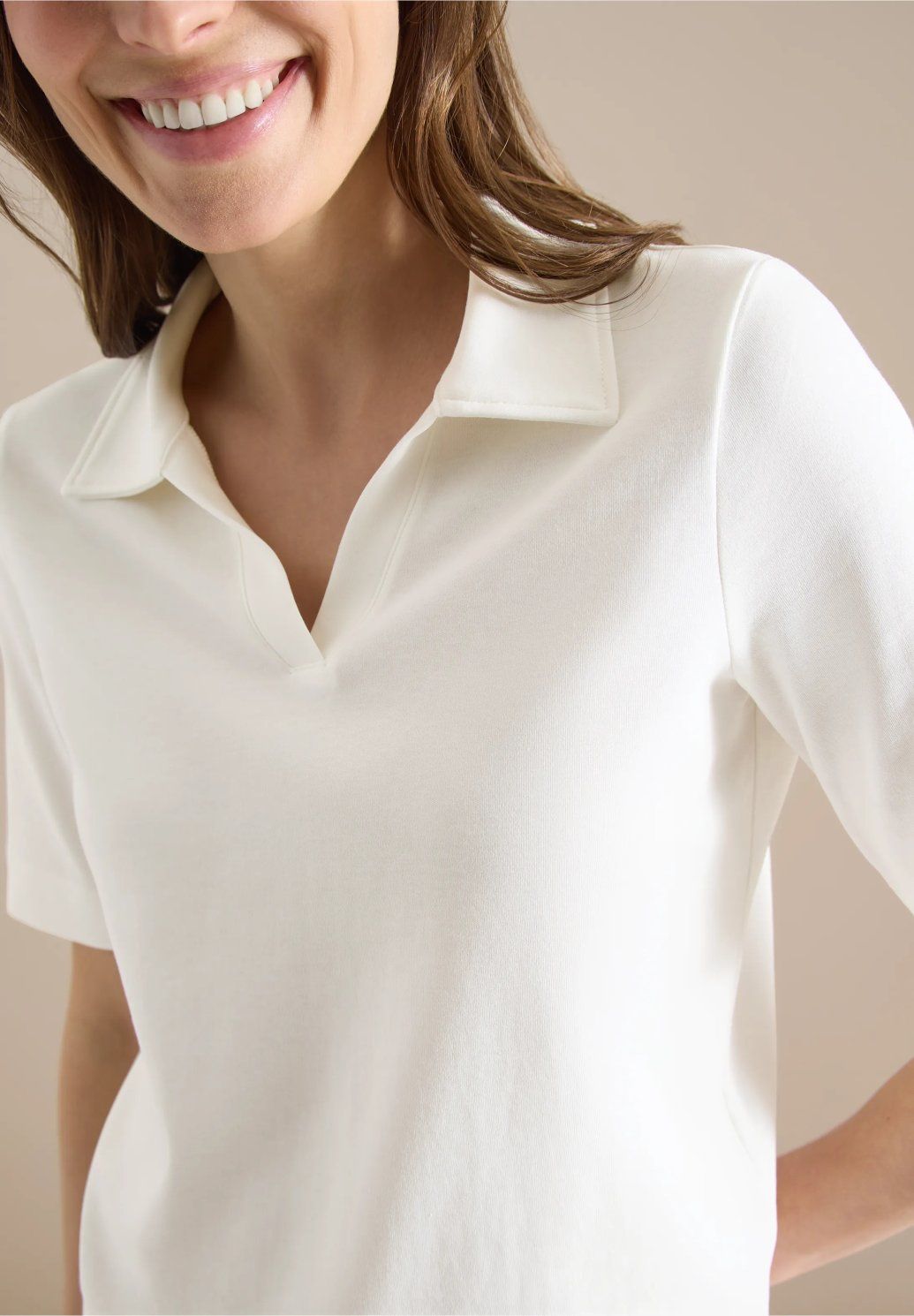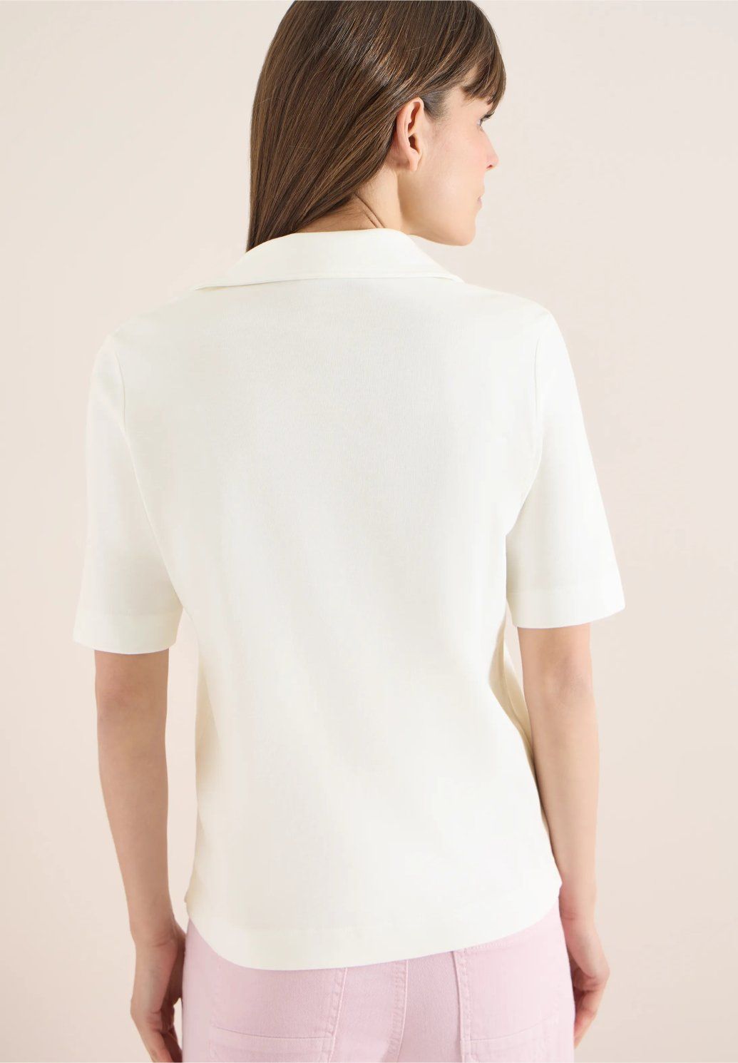 Elegantní tričko s límečkem v minimalistickém stylu, které skvěle doplní každý outfit. Má krátké rukávy a jemný výstřih do V, který působí žensky a upraveně. Příjemný materiál zajišťuje pohodlí po celý den a díky jednoduchému designu ho snadno zkombinujete jak s džínami, tak s elegantními kalhotami či sukní. Ideální kousek pro každodenní nošení i do práce.