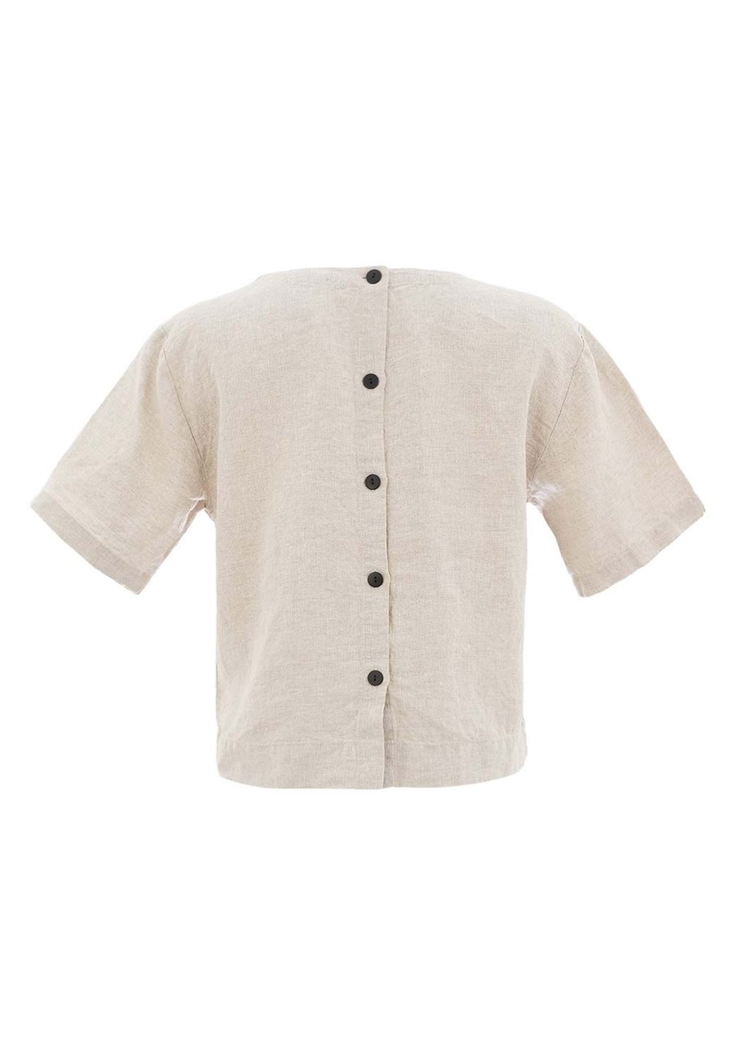 Dámská halenka v přírodní béžové barvě zaujme svou jednoduchostí a nadčasovým stylem. Má pohodlný volnější střih, krátké rukávy a kulatý výstřih, díky čemuž se skvěle nosí během teplejších dnů. Praktická náprsní kapsa s knoflíkem dodává halence zajímavý detail. Lehký materiál a neutrální barva umožňují snadné kombinování se sukní, džínami i kalhotami pro elegantní i ležérní outfit.