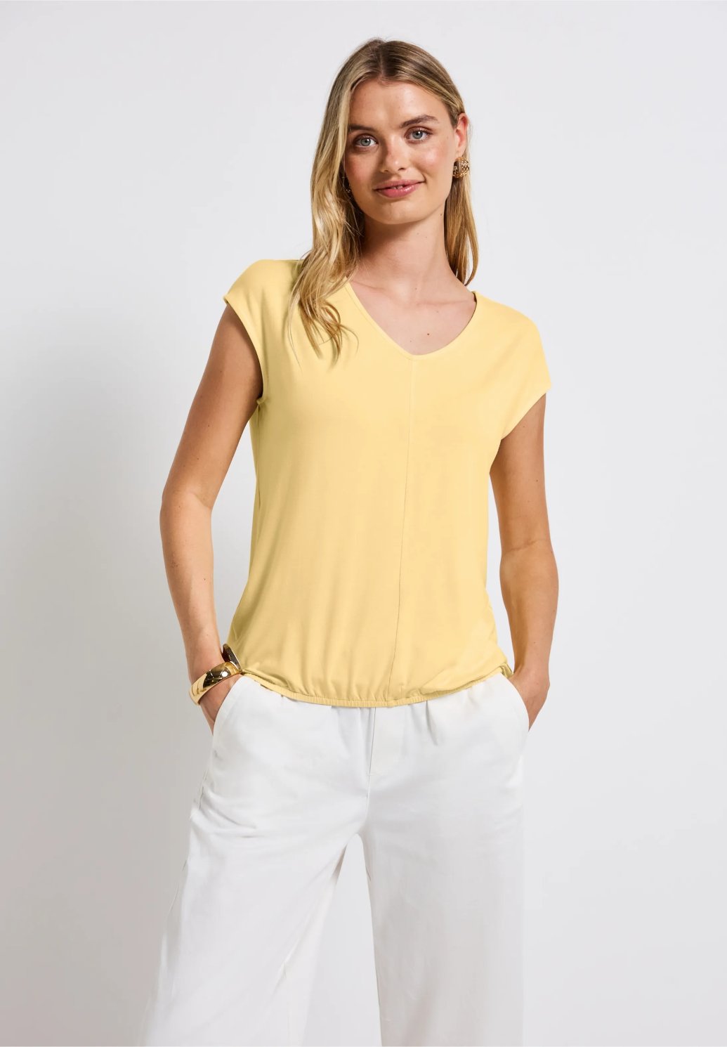 Toto dámské džersejové tričko od Street One je vyrobené z měkké směsi viskózy s přidanou pružností. Výstřih do V a spuštěná ramena vytvářejí uvolněný vzhled, zatímco elastický lem lichotí postavě. Všestranné tričko pro každodenní nošení i volnočasové aktivity.