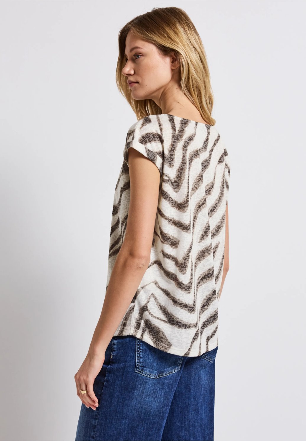 Dámské tričko s potiskem od Street One zaujme svým grafickým vzorem a lehce průhledným vzhledem. Lehká směs materiálů zajišťuje pohodlné nošení, zatímco lodičkový výstřih a spuštěná ramena podtrhují uvolněný vzhled.