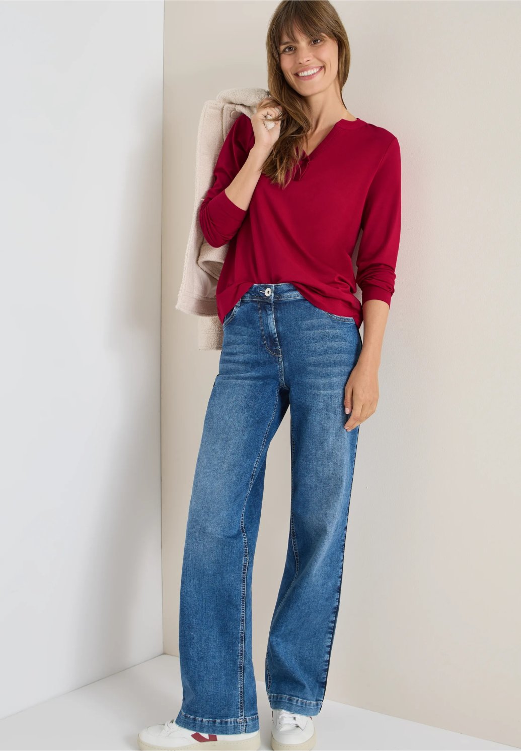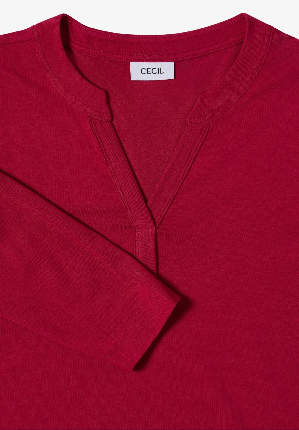 Toto dámské triko od značky CECIL zaujme svým ženským rozděleným výstřihem a měkkou směsí bavlny a modalu. Je jednobarevné, všestranné a snadno se kombinuje a jeho pohodlný střih zajišťuje příjemný pocit. Jednoduchý kousek na každý den.