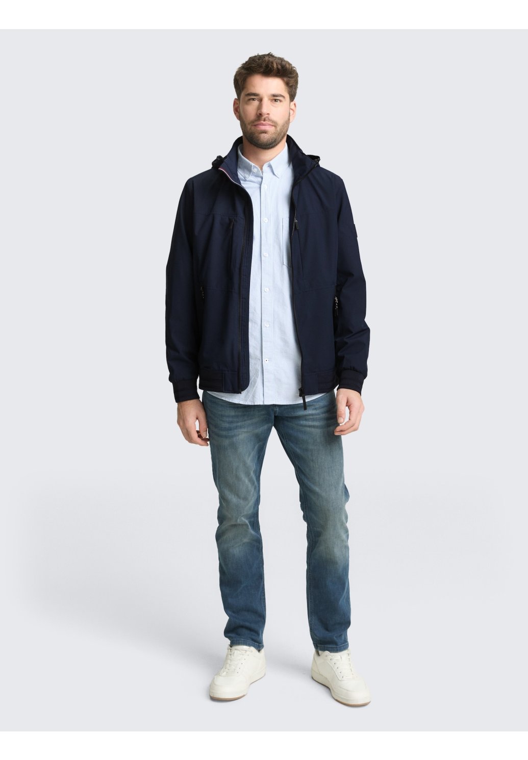 Pánská bunda v nadčasové tmavě modré barvě je ideální volbou pro každodenní nošení i aktivní dny ve městě. Moderní střih skvěle padne, zatímco lehký a příjemný materiál zajistí maximální komfort při nošení. Bunda je vybavena praktickou kapucí, kvalitním zipovým zapínáním a funkčními kapsami na drobnosti. Díky čistému designu ji snadno zkombinujete s džínami i chinos kalhotami. Stylový a univerzální kousek pro muže, kteří chtějí vypadat upraveně a cítit se pohodlně za každého počasí.