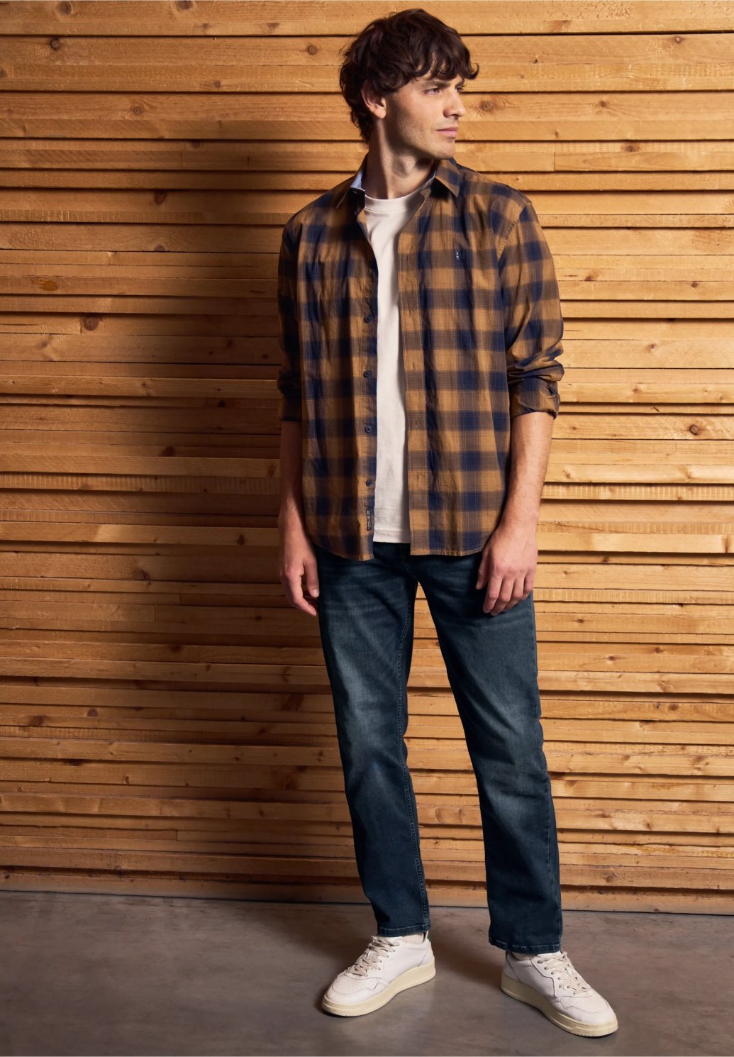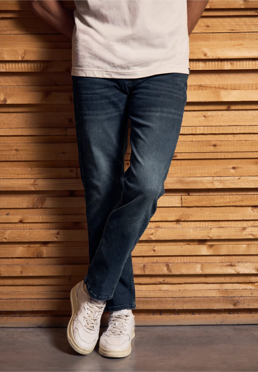 Tyto džíny ve stylu Player od Street One MEN zaujmou svými štíhlými, přiléhavými nohavicemi a klasickým tmavě modrým praním. Běžný střih zajišťuje pohodlné nošení, zatímco směs bavlny se strečem zaručuje volnost pohybu. Ideální pro moderní každodenní outfity.