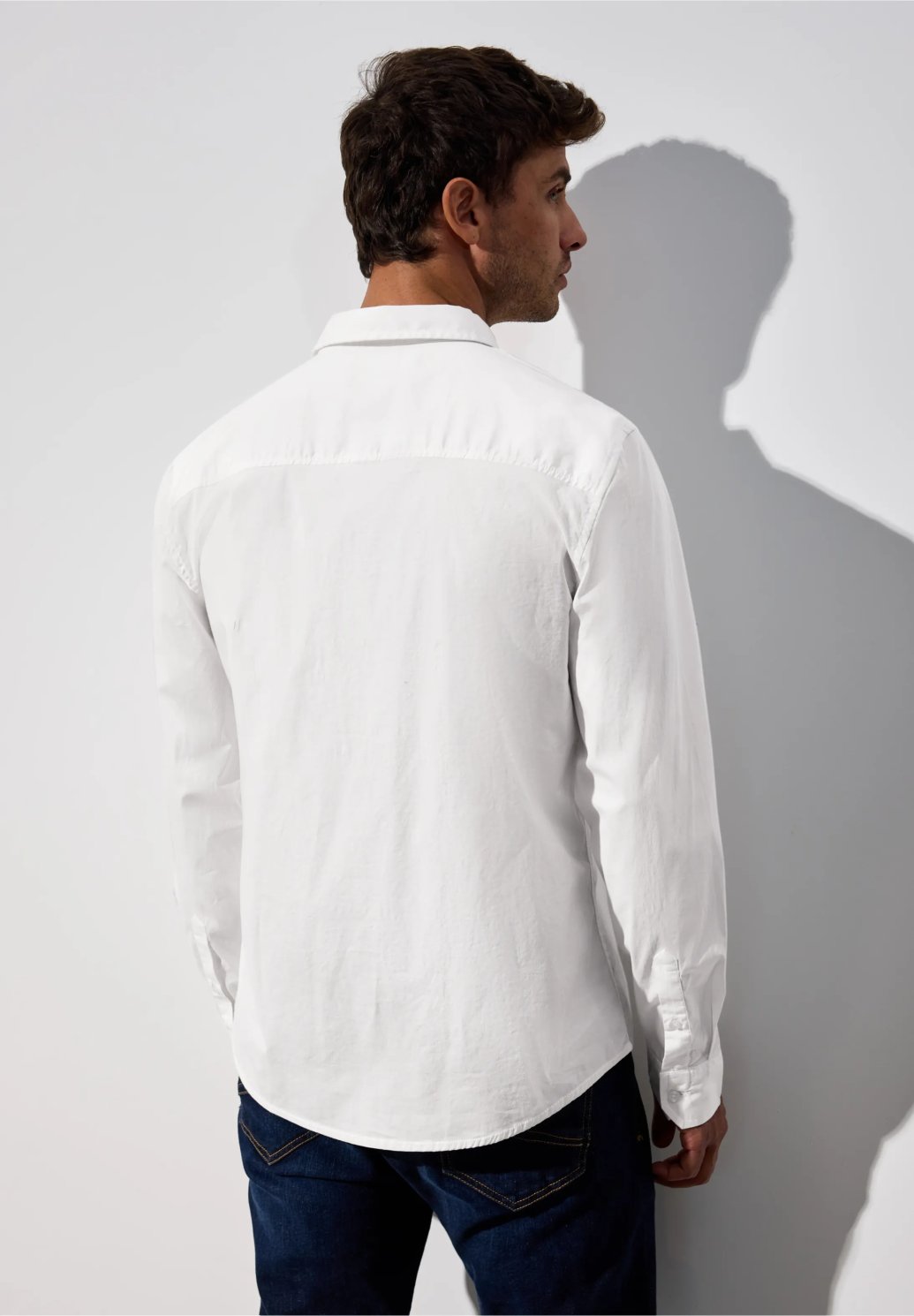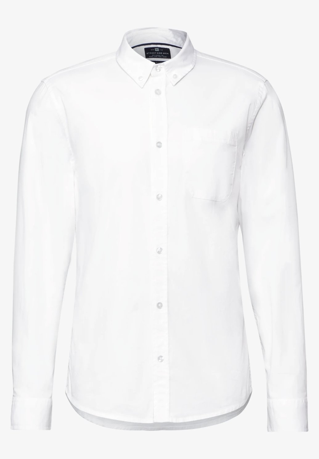 Úzká poplinová košile Street One MEN zaujme svým moderním střihem a výjimečným pohodlím díky směsi bavlny s přidanou strečovou úpravou. Klasický límeček a náprsní kapsa podtrhují její nadčasový vzhled. Všestranná košile do kanceláře i na volný čas.