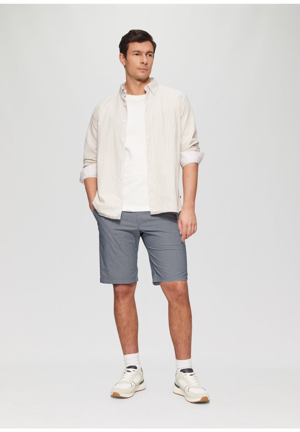 Chino kraťasy s pohodlným pocitem! Elastický pas a strečová bavlněná tkanina z nich dělají ideálního společníka na letní dny. Ať už piknikujete v parku nebo se procházíte městem, vždy se v nich budete cítit dobře a vypadat ležérně.