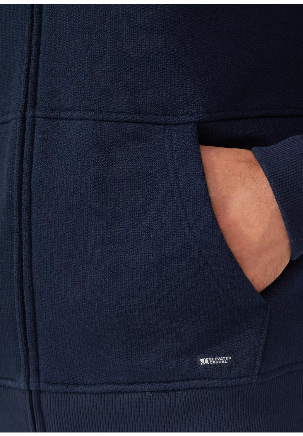 Objevte příjemné pohodlí v této strukturované mikinové bundě. Díky pevné kapuci, raglánovým rukávům a klokaní kapse je ideální na běžné výlety. Žebrované manžety a spodní lem dodají vašemu každodennímu vzhledu stylový nádech.