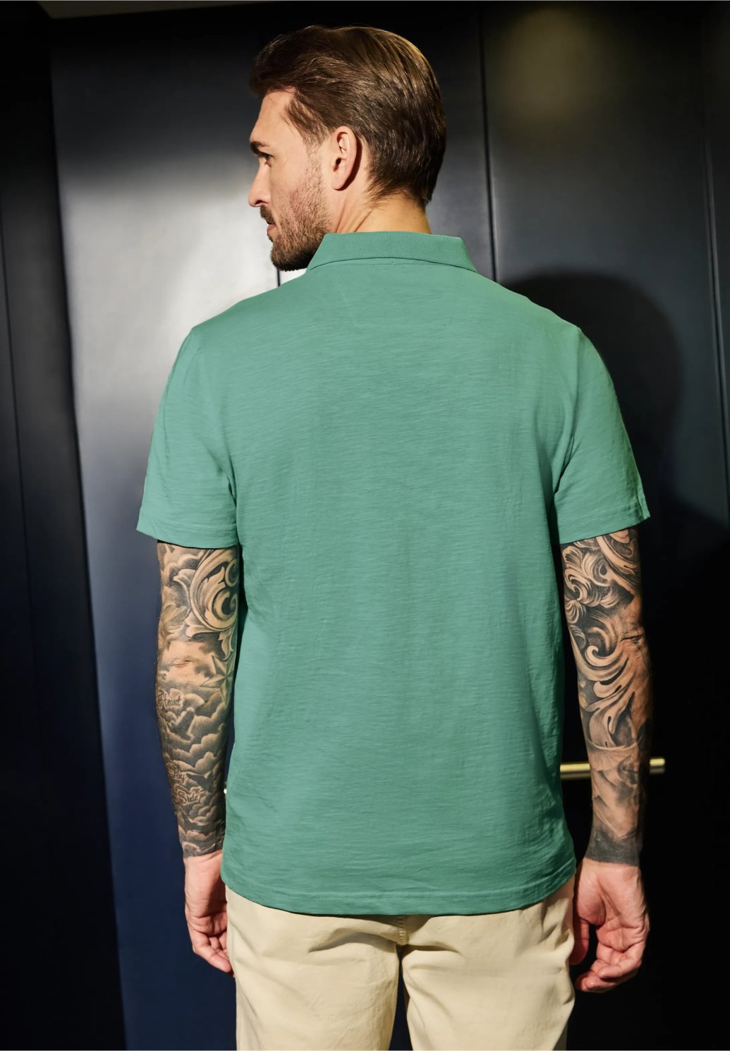 Džersejové polo tričko od Street One MEN je všestranným kouskem šatníku. Klasický polo límec a čistá bavlna ho činí obzvláště pohodlným na nošení. Ideální pro ležérní outfity, které stále vypadají stylově.