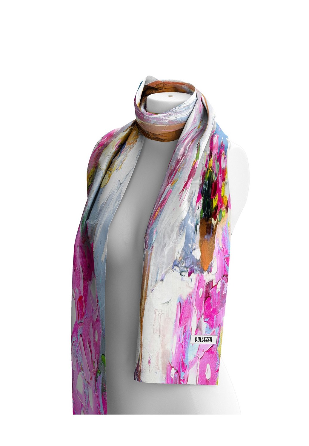 Elegantní dámský šátek Dolcezza zaujme na první pohled svým originálním uměleckým potiskem v jemných i výrazných tónech růžové, modré a krémové. Lehký a příjemný materiál krásně splývá, takže se pohodlně nosí po celý den a snadno doladí jak elegantní, tak volnočasový outfit. Šátek můžete nosit klasicky kolem krku, volně přes ramena nebo jako stylový doplněk ke kabátu či saku. Pokud hledáte výrazný kousek, který oživí váš šatník, tento model je skvělou volbou.