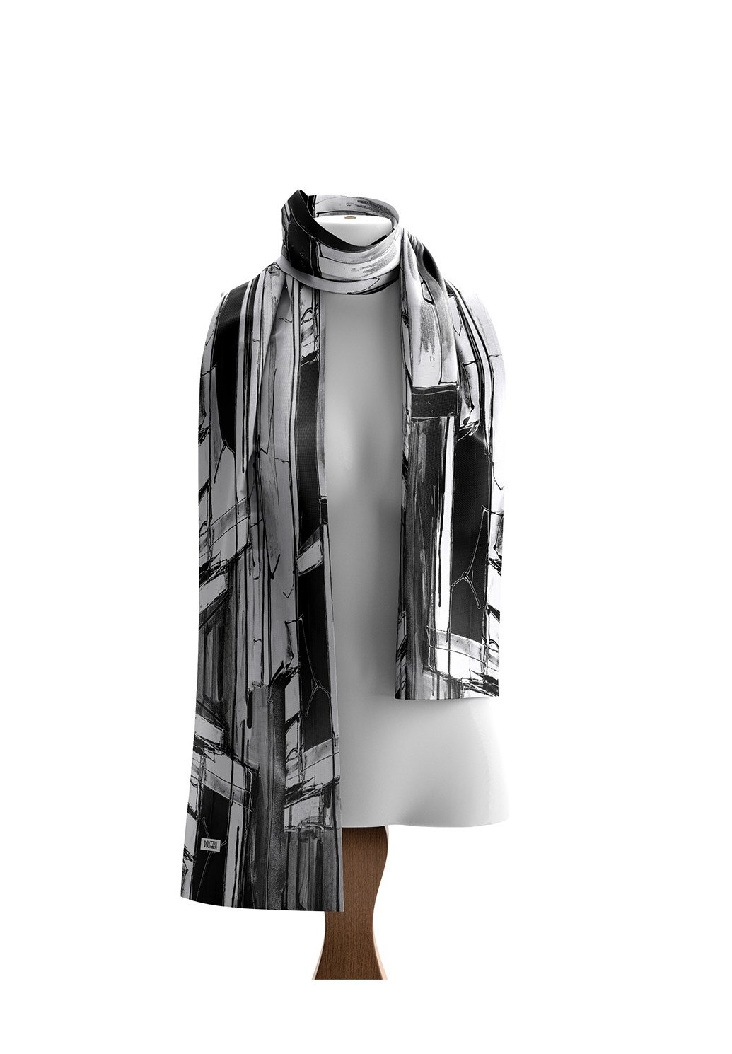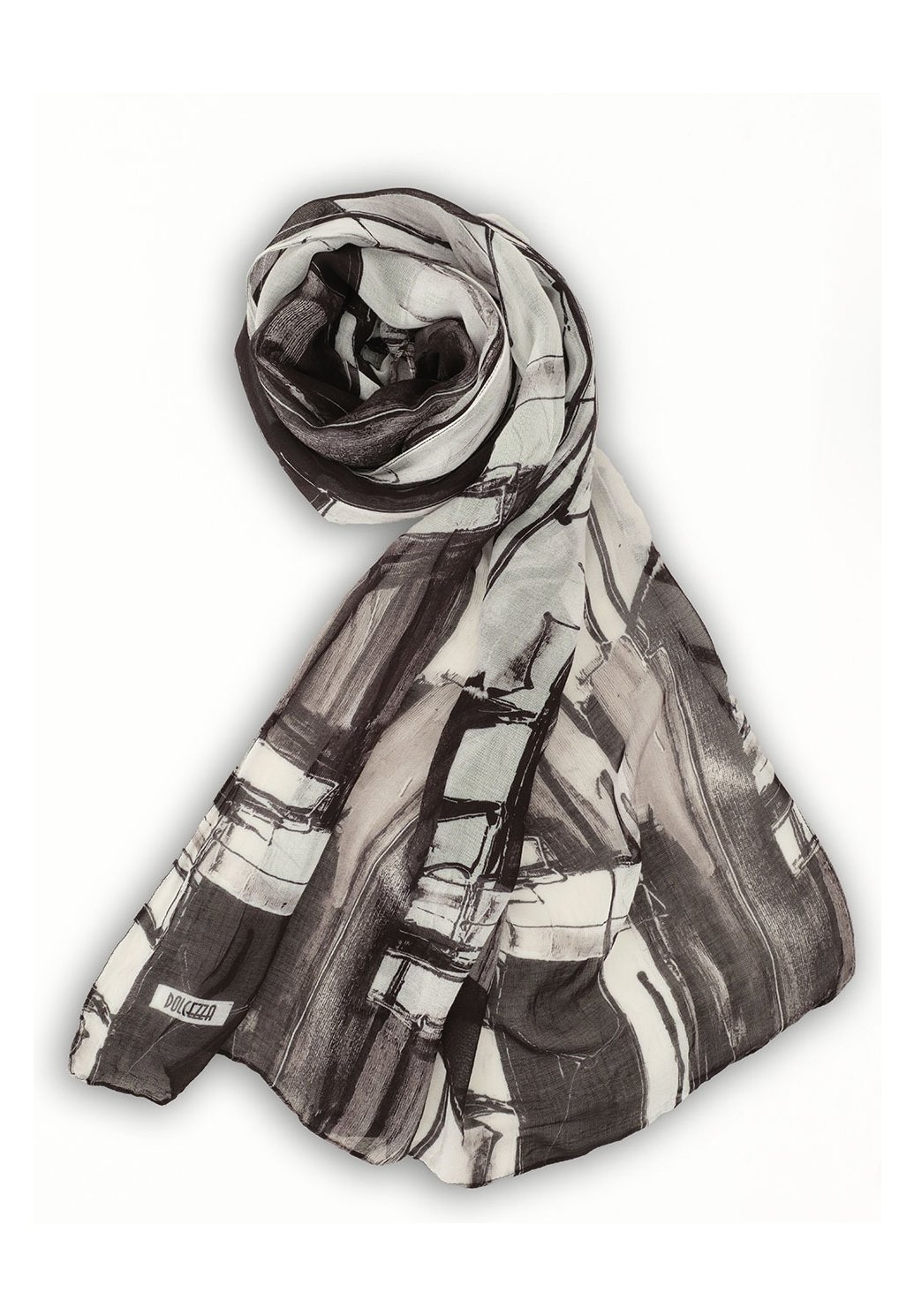 Elegantní dámský šátek Dolcezza s originálním abstraktním vzorem v odstínech černé, šedé a bílé dodá vašemu outfitu šmrnc a styl. Lehký a vzdušný materiál je příjemný na dotek a ideální pro celoroční nošení – perfektně doplní jak elegantní kabát, tak ležérní sako či halenku.