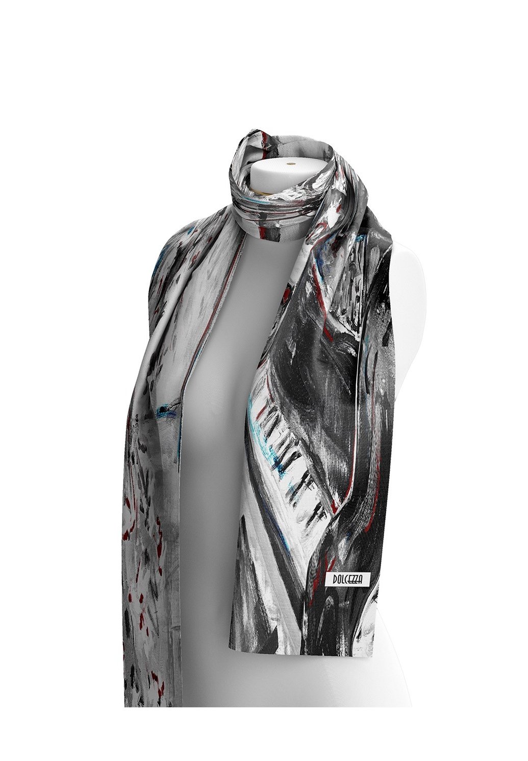 Elegantní šátek s uměleckým potiskem, který dodá outfitu osobitost a výraz. Jemný materiál je příjemný na nošení a lehce splývá, díky čemuž se šátek skvěle přizpůsobí různým stylům uvázání. Kontrastní abstraktní motiv působí moderně a nadčasově zároveň, ideální k jednoduchým kabátům, sakům i svetru. Stylový doplněk, který podtrhne vaši individualitu a dotvoří outfit do posledního detailu.
