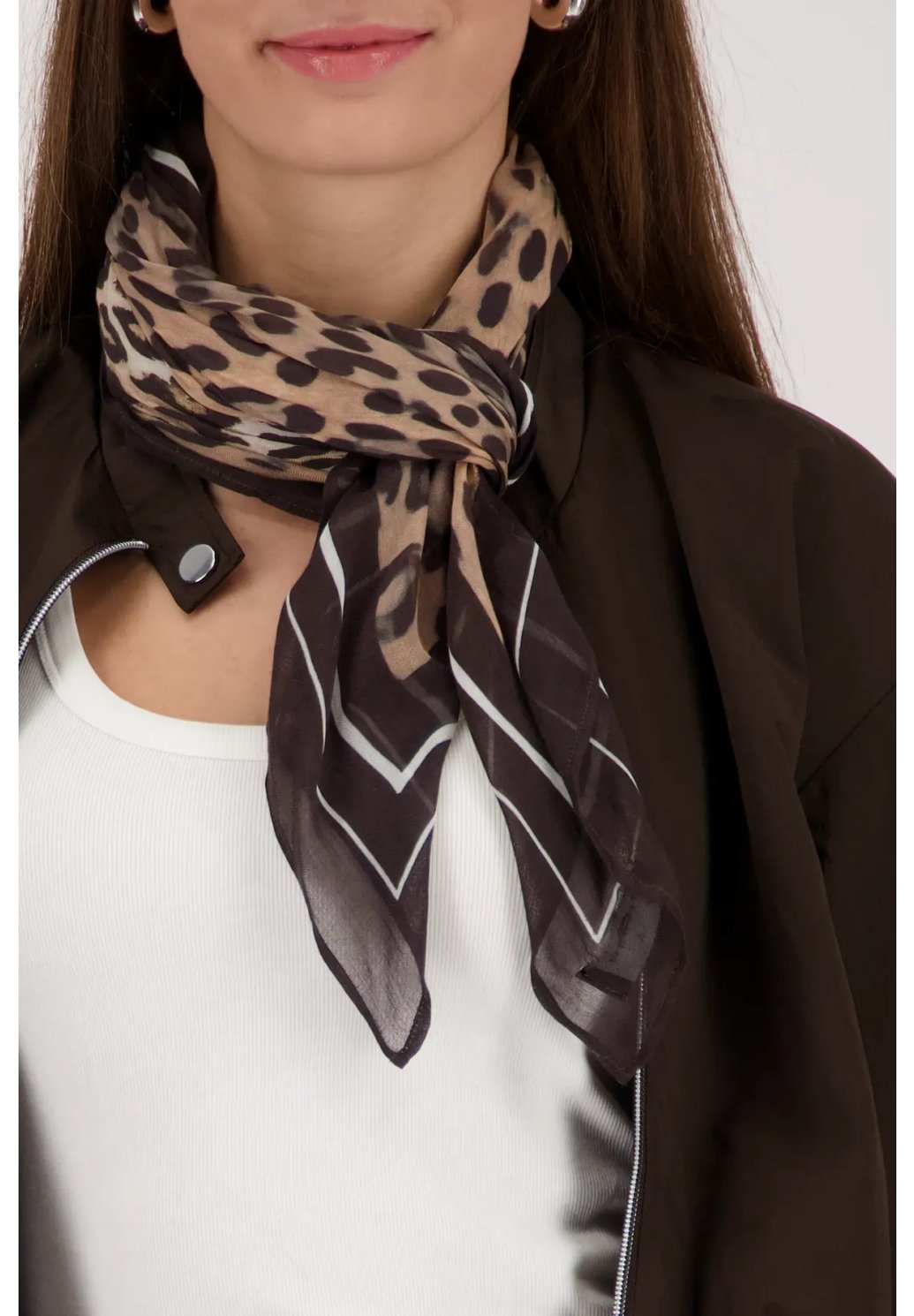 Tento elegantní šátek s nadčasovým leopardím vzorem je stylovým doplňkem, který okamžitě pozvedne každý outfit. Lehký, jemný materiál příjemně splývá a umožňuje různé způsoby uvázání – kolem krku, na kabelku nebo do vlasů. Kombinace neutrálních odstínů z něj dělá univerzální kousek, který snadno sladíte s elegantním i ležérním stylem. Ideální volba pro ženy, které chtějí dodat svému vzhledu špetku sofistikované elegance.