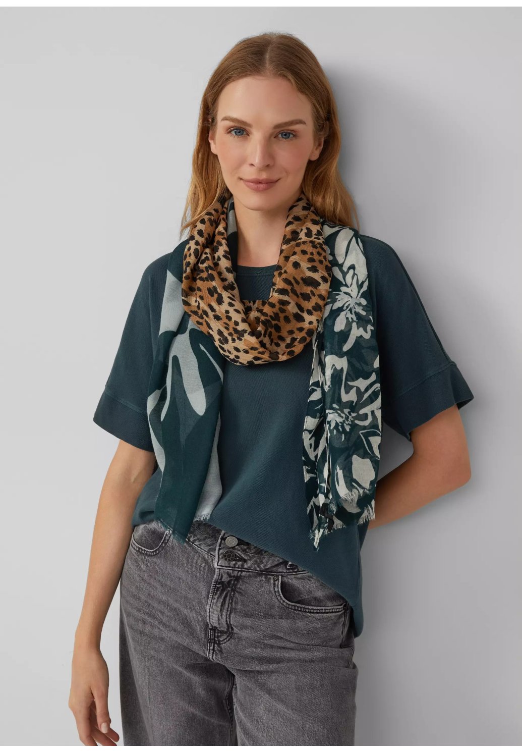 S tímto pestře vzorovaným šátkem se směsí abstraktních, zvířecích a květinových potisků proměníte každý outfit. Lehká tkanina krásně padne, zatímco umělecké detaily dodají vašemu kompletu poutavou tečku.