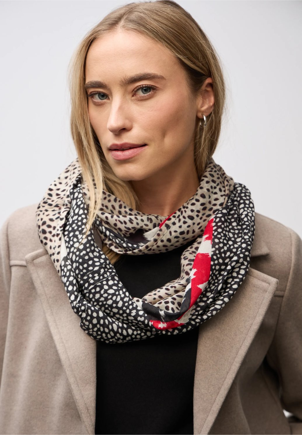 Tento vzorovaný dámský šátek od Street One se pyšní stylovou kombinací vzorů a příjemně měkkým pocitem. Uzavřený trubicovitý tvar zajišťuje snadné stylování a pohodlné nošení. Ideální pro dodání svěžího nádechu vašemu outfitu.