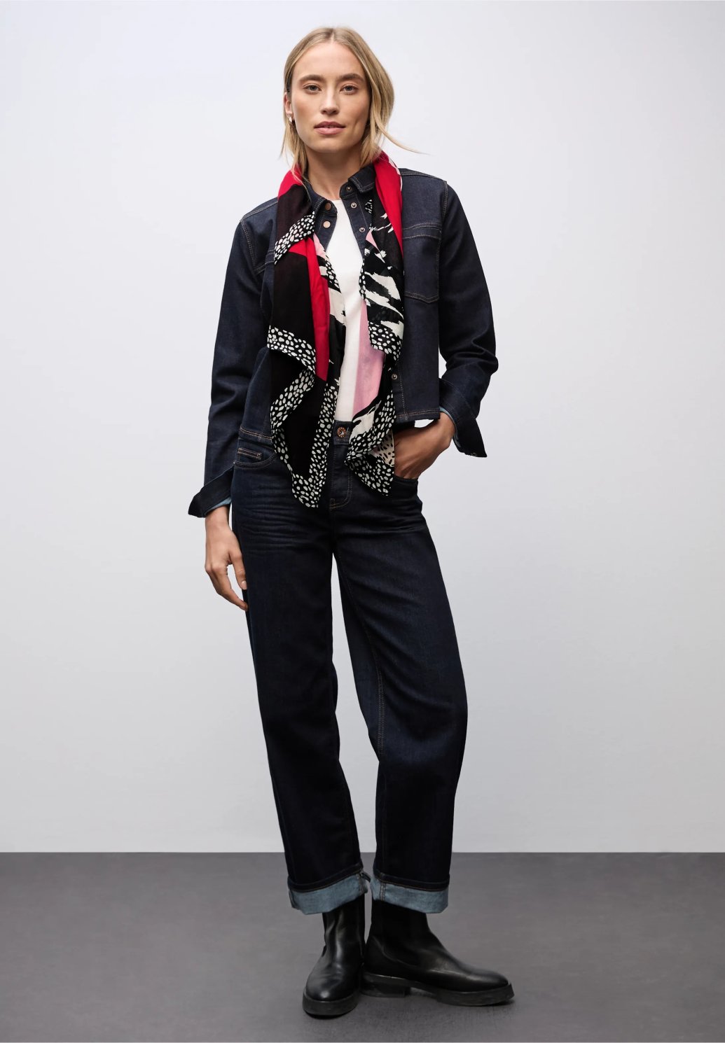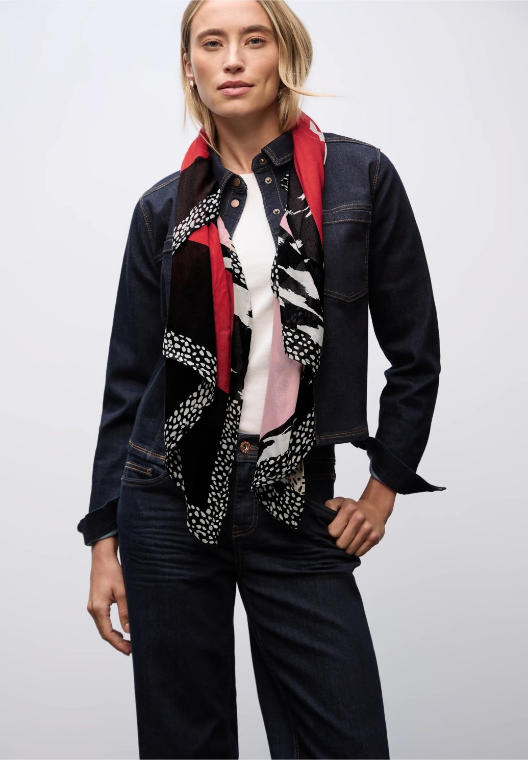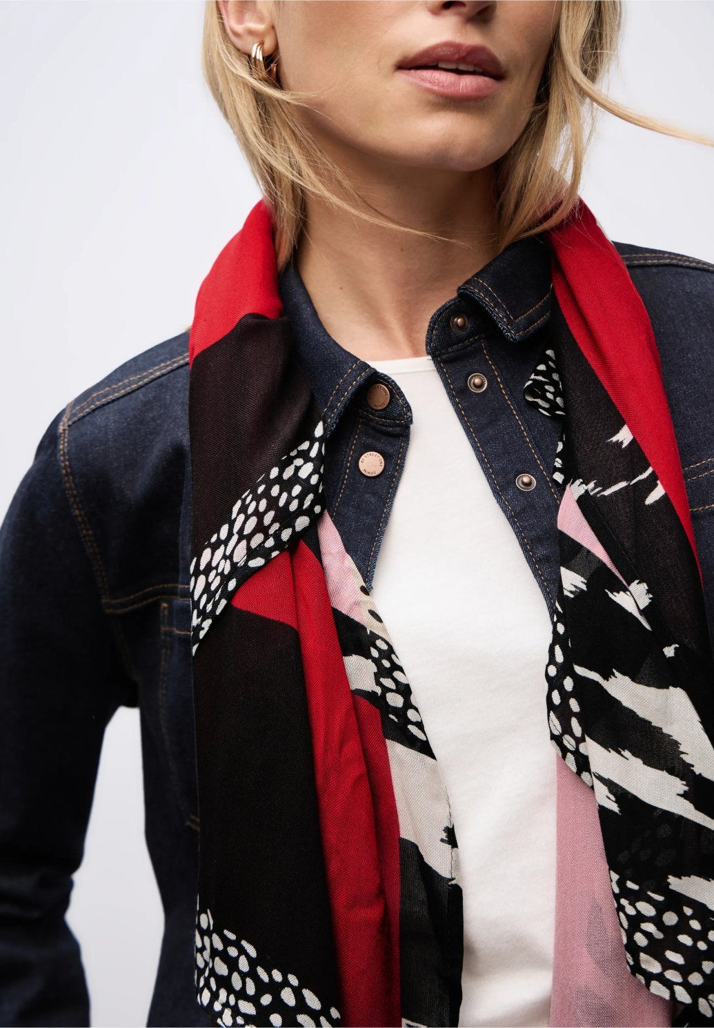 Tento vzorovaný šátek od Street One pro ženy zaujme svou barevnou směsicí vzorů a příjemně lehkou modalovou tkaninou. Lze ho nosit různými způsoby – ať už klasicky kolem krku, nebo jako módní doplněk s kabelkou. Je ideálním doplňkem pro každodenní ženský outfit.