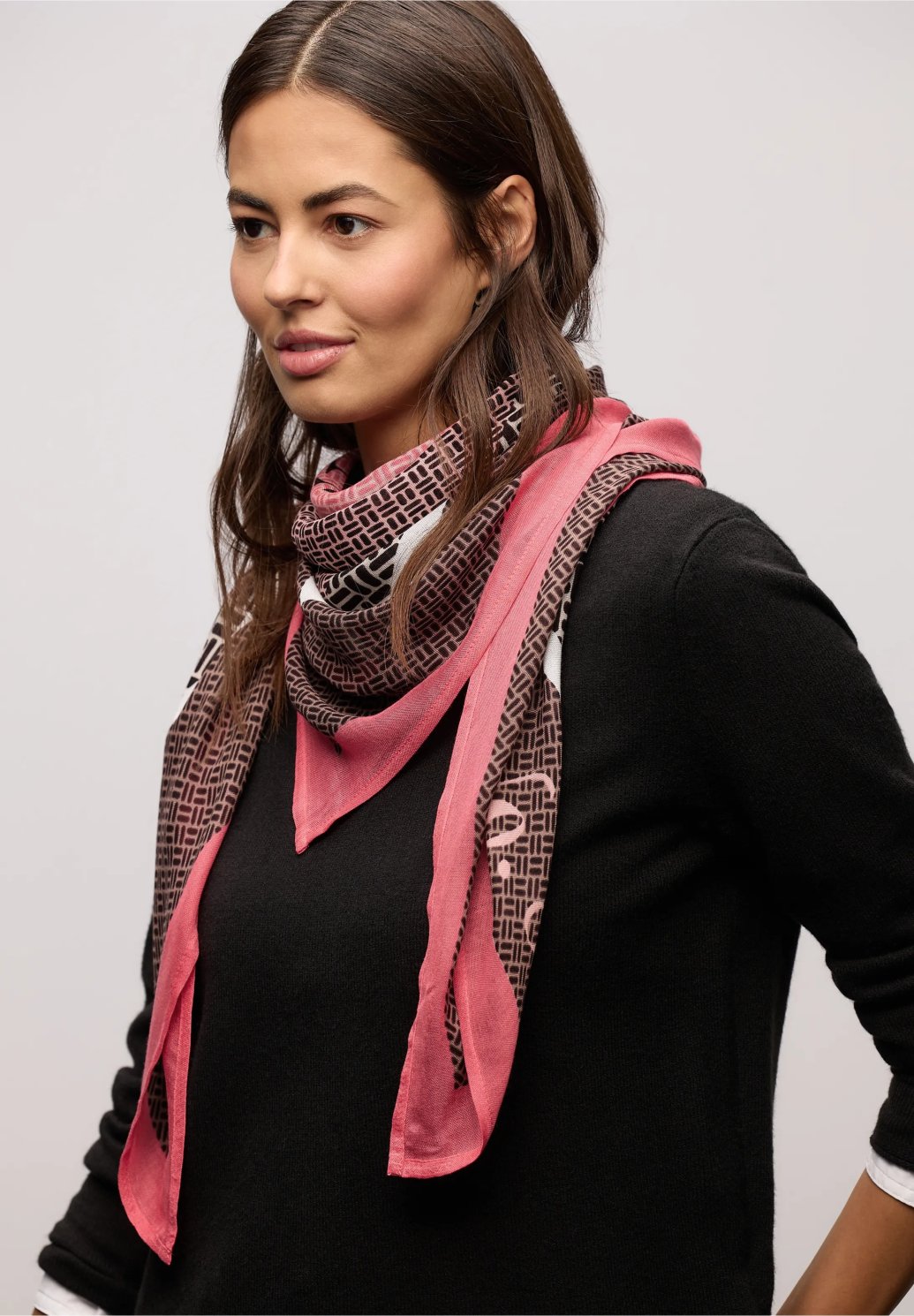 Tento čtvercový šátek od Street One pro ženy zaujme svým výrazným grafickým designem. Měkká modalová tkanina zajišťuje příjemný pocit na pokožce. Lze ho nosit různými způsoby – klasicky uvázaný nebo ležérně zauzlovaný. Ideální pro přidání barevného akcentu do vašeho outfitu.